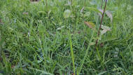 The new front bed that I created in March is an area of stress. I didn't remove the St. Augustine grass after I hoed it and before I sowed seed. I just tossed all the seed right alongside the existing turf grass that I was trying to replace. I was once told (a rumor?) that natives would eventually outcompete the turf grass, so it's not super important to pull everything first.