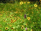 The rain garden is now fully covered with coreopsis. Some clasping coneflowers are coming in along with some horsemint. The tallest plants are roughly 5' tall. It's about time to finally cut the path to the back swing since it's pretty overgrown.