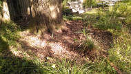 The rain garden has filled out nicely, but I'm noticing a particular lack of something: grasses. I suppose one of my initial-phase goals was to just get some diverse species established, which is why I haven't trimmed any plants from growing between the stepping stones. (They're blocking the last few on the way to the back bench.) Now that they're established and apparently doing well — the tallest plants are 4' tall — I'm waiting for the flowers and resulting seeds. At that time, I think I'll start discouraging some growth.