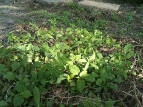 The rain last weekend helped out some of the sprouts while killing others. In the first three pictures, you can see that those in the "highlands" survived while those in the "lowlands" perished. This has made me rethink my haphazard plan. All the low parts where water collects should be a a different sort of plant: those that can be flooded. I initially thought of horsetail (Equisetum hyemale), but it is said to be very aggressive. I still haven't figured it out.