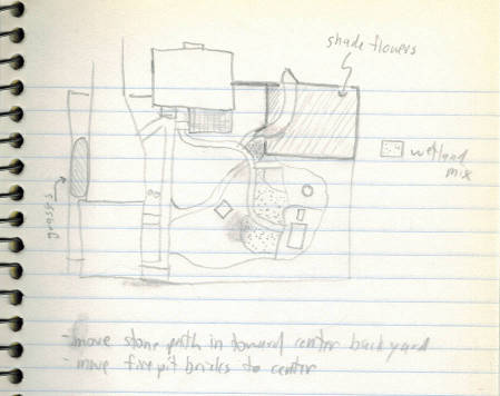 I printed out a better scaled drawing of the yard and copied my previous plan onto it.