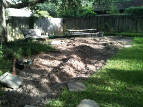 This weekend, I wanted to just go through everything again and pull out large clumps of grass roots. As I was doing it, I remembered I had wanted to reform the ground a bit so that the very back brick area doesn't get swamped with water whenever it rains a lot. So I started digging a slight depression and a levee of sorts. It's hard to tell which way the water will drain, but it's looking kinda cool now. I made a little ridge and put the stepping stones on it. I guess I'll wait for the dirt to settle a bit. Hopefully, it'll rain at some point, too. Then I might just be ready for sowing next month. I haven't decided exactly when I want to. Perhaps mid-month.
