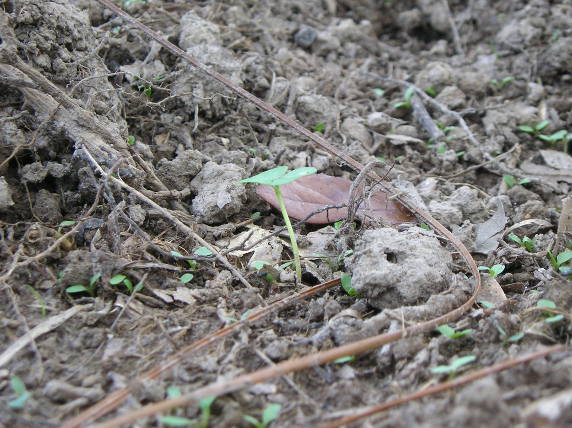 It rained three times this past week. I also watered before I knew the rain was coming. Lots of seeds have sprouted. I imagine most of them are the ones I sprouted, but I can't be sure until they get bigger. I think that second picture is of an Illinois bundleflower, which is exciting. I think I may have mistakenly plucked these up in the past because I thought they were silk trees.