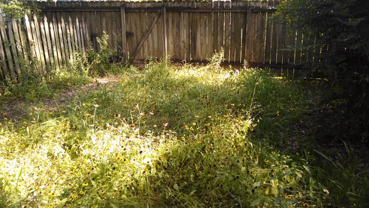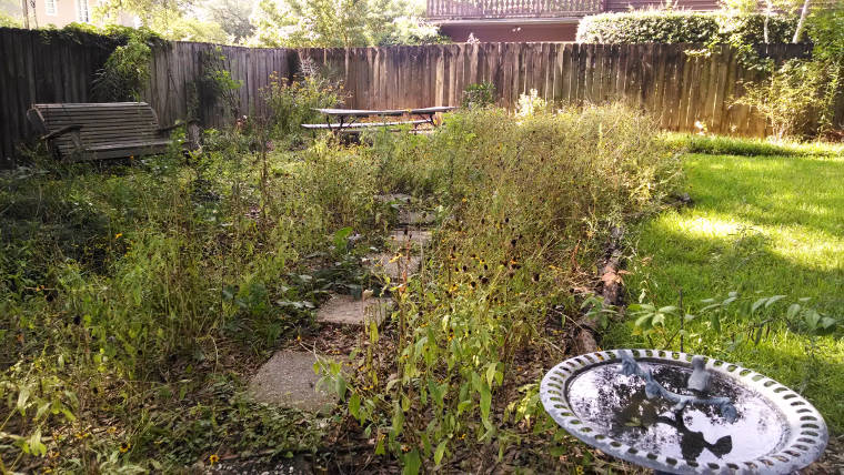 The Eastern Savannah Grass Mix might be growing. It's hard to say. It's going to take at least 3 years for it to get big. In the meantime, I'll do my best to keep the area short (<6 inches) and weeded — chamberbitter and crabgrass are the main culprits. I'll buy some more grass seeds to sow elsewhere. Because it takes so long, I want to start as soon as possible. My notes say I sowed some in the alley. (Hopefully, they didn't get washed away.) That means I'll only need some for the rain garden and front yard. I'll focus on little bluestem, Gulf muhly, and switchgrass. The broomsedge that came with the house is starting to spread around on its own, so no need to spend money on that one.