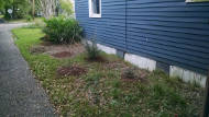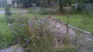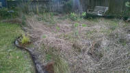 Further up the driveway is this stuff. Best I can figure is it's primarily crap. Exotic grasses and whatnot. I've tried to pick out all the chamber bitter, but I'm sure there's still some in there. The main plant is a bottlebrush from Australia.