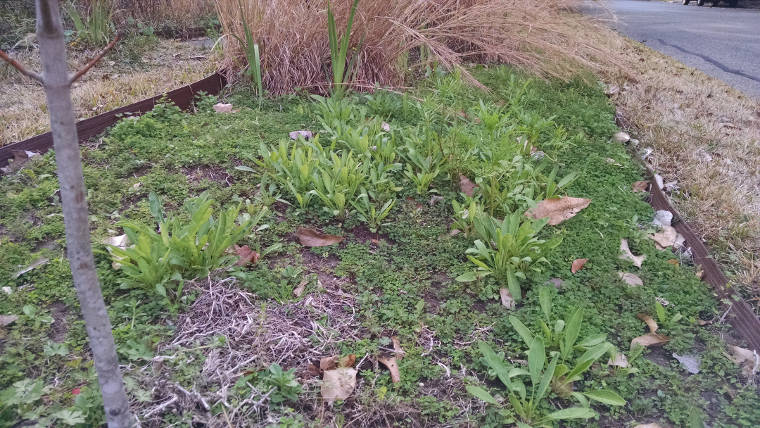 And now for the new territory: the front yard. If you recall, I sowed it with seed from the backyard. This one is the strip nearest the street.