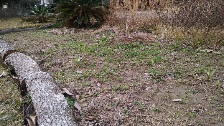 The rain garden has now been in existence for about 1.4 years. Way back in August and September 2013, I carved out a retention area and sowed the seed. The Chicken Yard was sown at the same time but without any land-sculpting. So how do they look now in their second mid-winter? (Or is it late winter?)